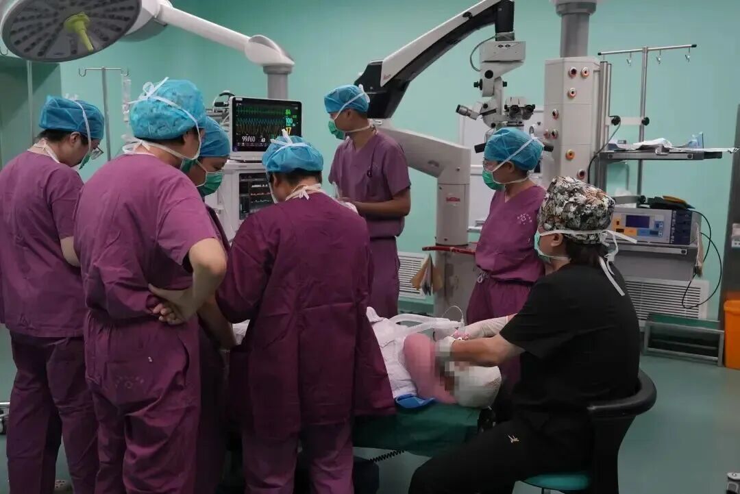 医院眼部急诊和眼外伤中心争分夺秒进行右眼球复位、眼外肌修复、泪小管吻合、内眦韧带重建等多项操作,精细清创、清洗,经鼻进入进行人工泪管置入等,每一步都尽可能给患者减少痛苦,最大程度保证恢复她的眼睛组织功能和眼部外观;耳鼻咽喉头颈外科接力实施左耳廓成形、外耳道成形手术。
